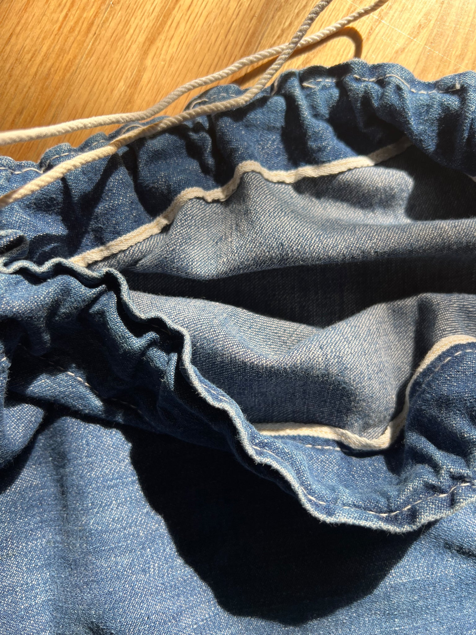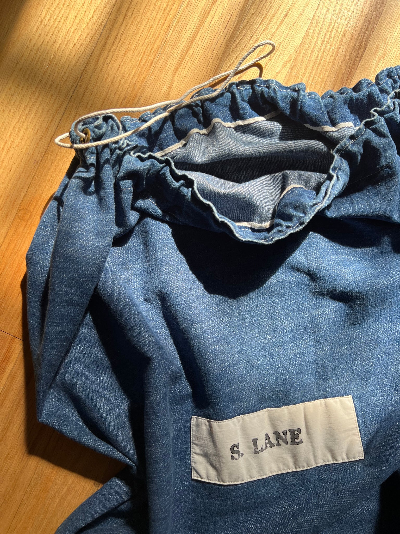 Soft well worn vintage denim laundry bag